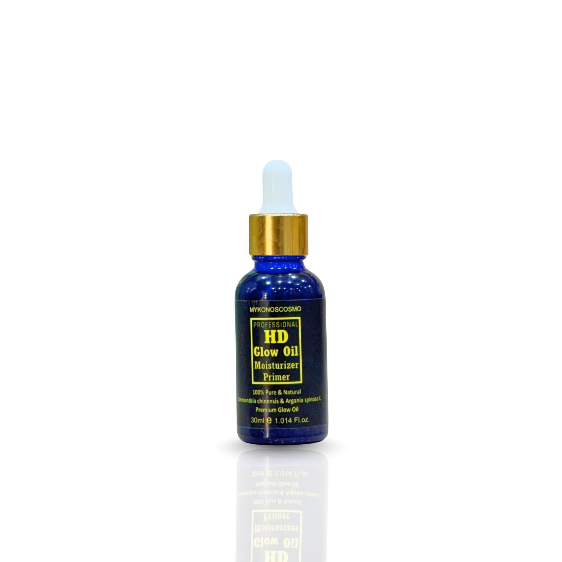 The MYKONOSCOSMO Professional HD Glow Oil Moisturizer Primer is a 100% pure and natural blend of Simmondsia Chinensis and Argania Spinosa oils that deeply hydrates the skin while creating a luminous, dewy base, making it the perfect pre-makeup primer for a radiant, long-lasting HD finish.