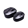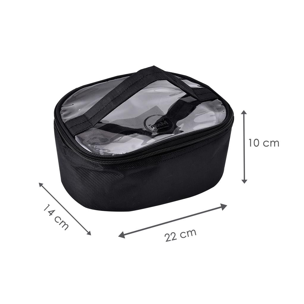A set of two oval-shaped bags (one larger, one smaller) with black fabric trimming, clear PVC windows, and webbing straps. They are secured with zippers and feature the Vahmaya logo centrally printed.